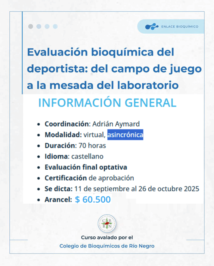 ¡Ya podés inscribirte al curso “Evaluación bioquímica del deportista: del campo de juego a la mesada del laboratorio”!