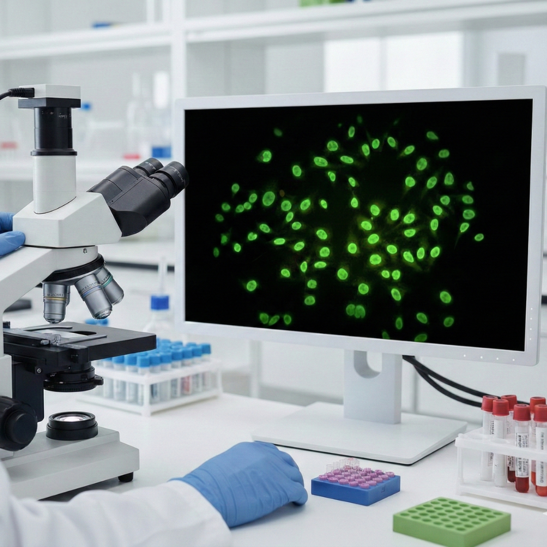 Curso estructurado en dos grandes ejes temáticos, orientado a bioquímicos y profesionales del laboratorio clínico. En la primera parte se abordan los fundamentos inmunológicos, la interpretación de patrones de inmunofluorescencia, las técnicas diagnósticas para anticuerpos antinucleares (ANA/FAN) y las herramientas de evaluación analítica integradas a la práctica clínica.