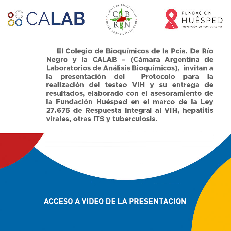 La Cámara Argentina de Laboratorios de Análisis Bioquímicos (CALAB) llevó adelante una nueva presentación del Protocolo para la realización del test de VIH y la entrega de resultados junto a la Fundación Huésped.